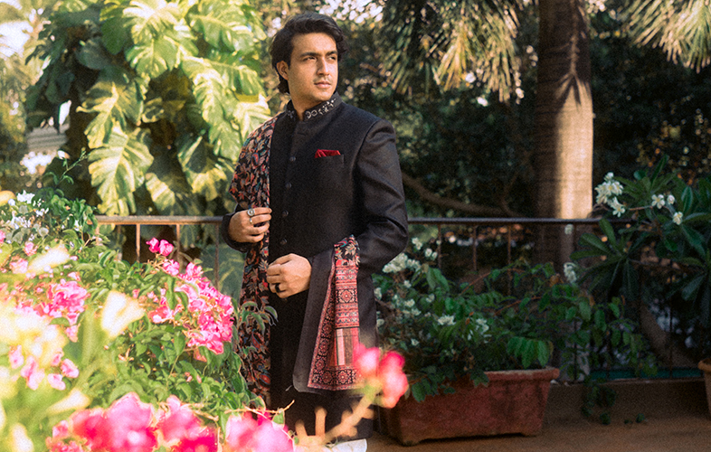 Tanzeel has a charming fashion sense, and he is making it easier for the grooms-to-be to find the perfect sherwani suit to complete their wedding and party appearance. He flaunts a simple and magnificent style through light pink and black sherwani that looks royal as well as contemporary. The evergreen option for grooms gets a style update with the pastel hue and the floral dupatta that is working wonders with the black designer sherwani for grooms.