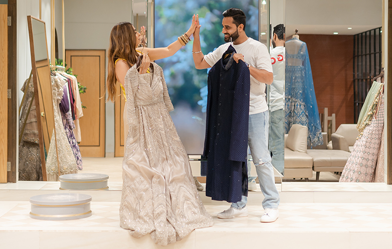 Gurleen and Prithivi, the charming fashionista couple, have caused quite a stir with all of their bridal looks, including occasional men’s clothing, in KALKI’s couture designs.