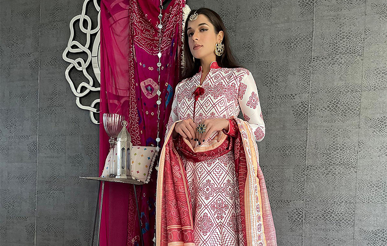You can do away with a completely traditional choice by switching on to this leheriya printed Anarkali Kurti in georgette fabric. The coral shade Kurti gives you a touch of ethnic feel and also stands out as a designer number with its suave and simple structured look. The leheriya print and the gotta Patti are elevating the very simple look.