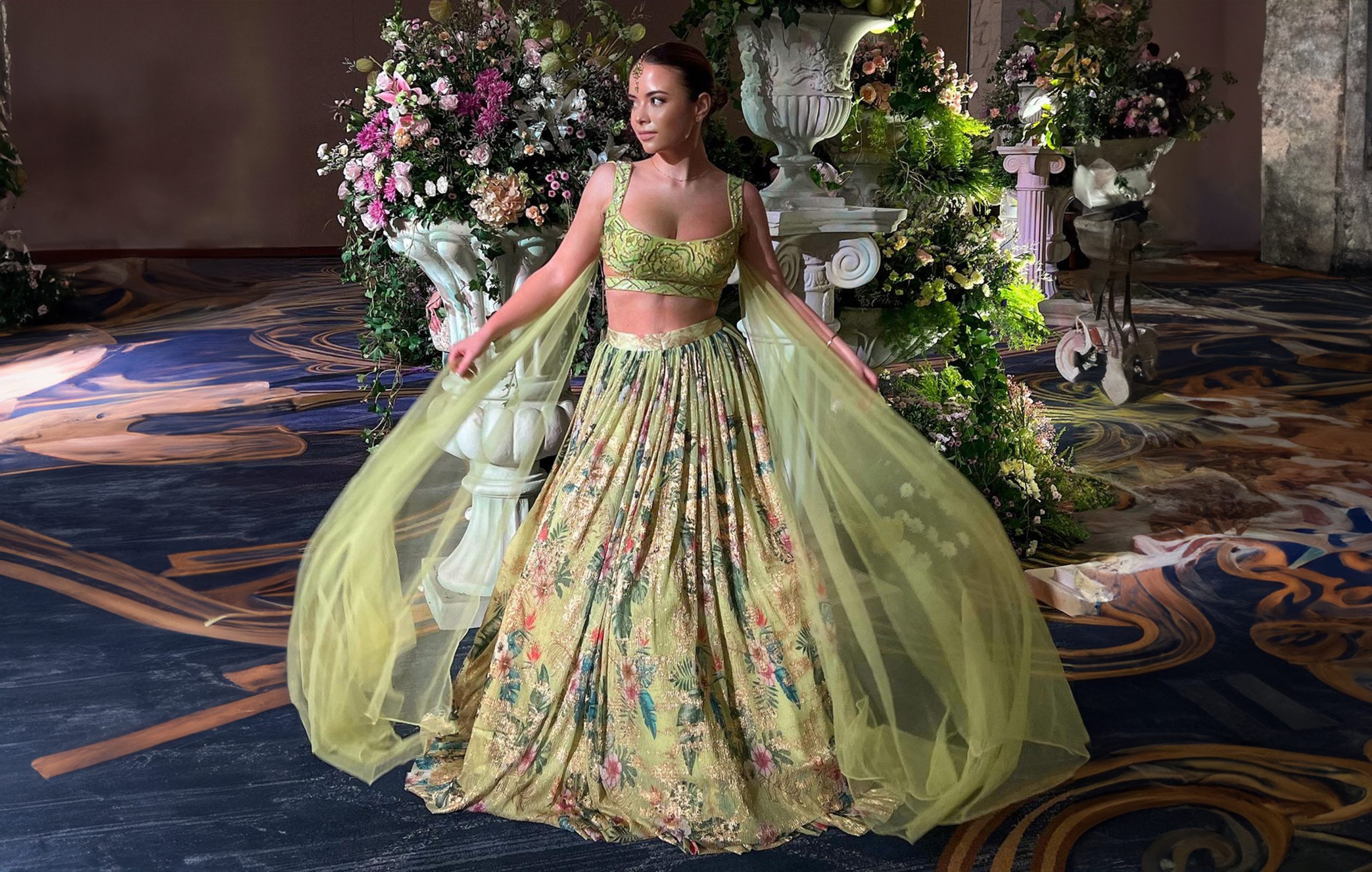Embracing the traditional elegance of a lehenga and adding an additional tadka of western style to the ensemble is an exciting concept. The green printed lehenga choli with an embroidered jacket is bang-on attire for women who wish to stay close to their roots but at the same time look cool and hip just like the modern women they are.