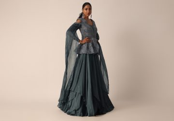 Grey colour can be easily overlooked when it comes to festive outfits. Well, for Navratri Day 3, a grey-coloured outfit