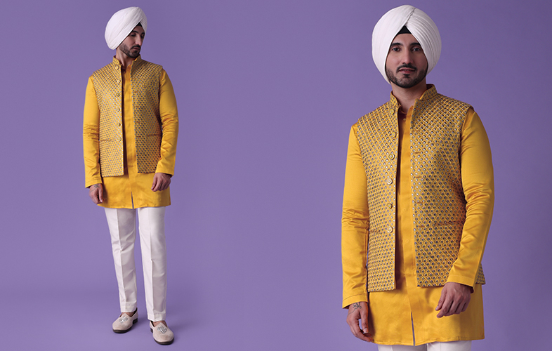Since Baisakhi is a festival of bright clothes, opt for bright and vibrant colors such as orange, yellow, pink, or green for your kurta pyjama. You can accessorize with a color pop and choose a colorful turban or dupatta. You can round off your traditional look with a traditional jutti or mojari. Even if you want to keep the look blingy, ensure you don’t overdo it. You can also wear a Nehru jacket over your kurta to give it an elegant touch. Ensure your look is simple yet classy.