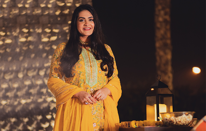 Are you scared of running the risk of getting toasted in heat? Fret not. We have something for you to get dressed up in a cool way for your ceremonies. Pick this bandhani dress with palazzo pants that speak in color as well as style. The light cotton salwar suit in a bright lemon-yellow shade will lift your look and spirit instantly.