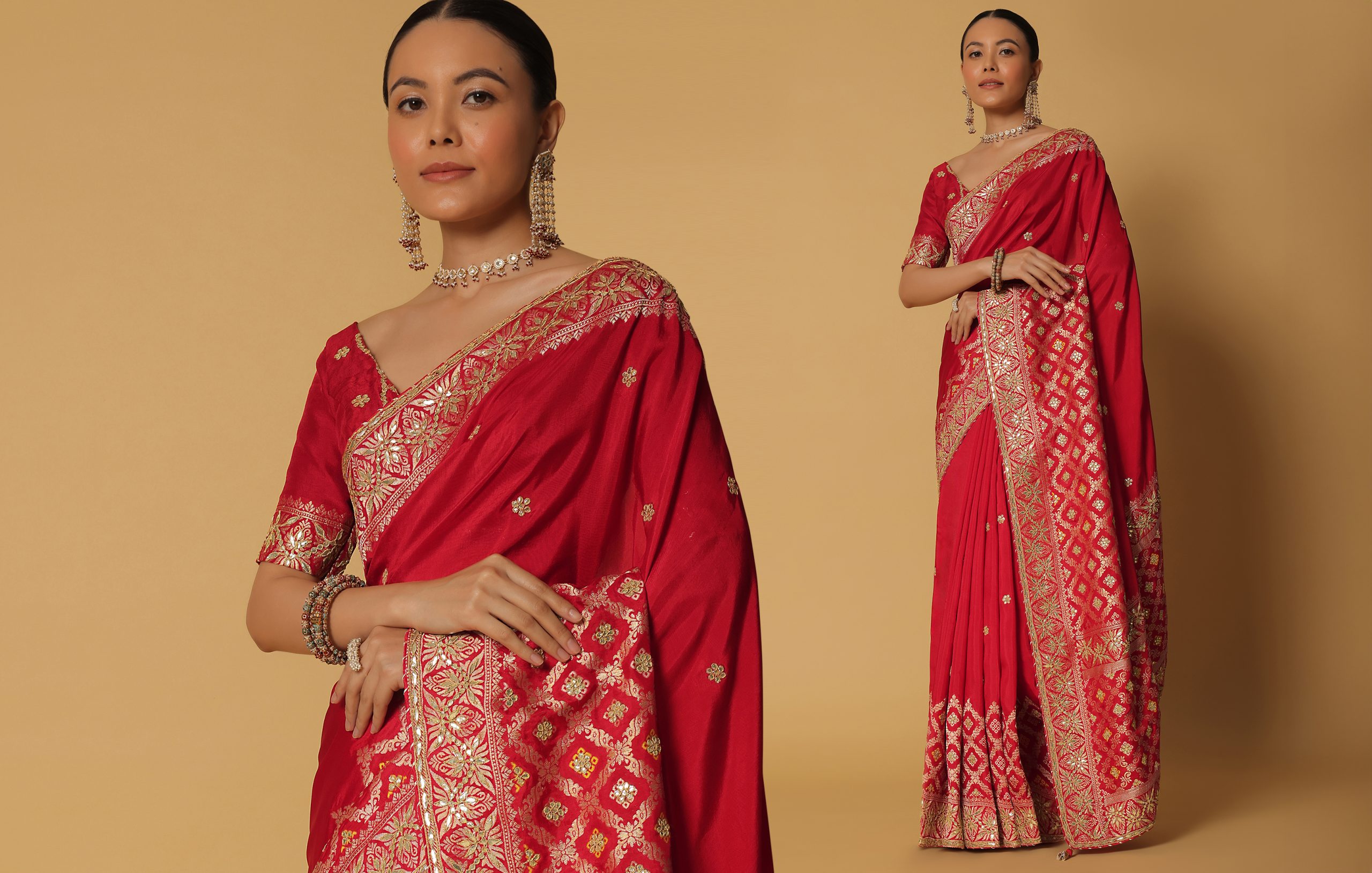 A perfect choice for brides who wish to embrace both traditional and contemporary elegance. This can be achieved by wearing a pre-pleated saree with the option of draping the pallu in different ways.