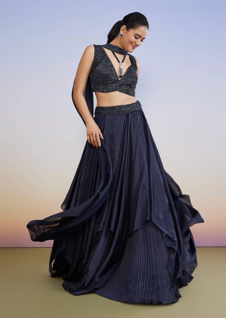 Navy Blue Fusion Lehenga