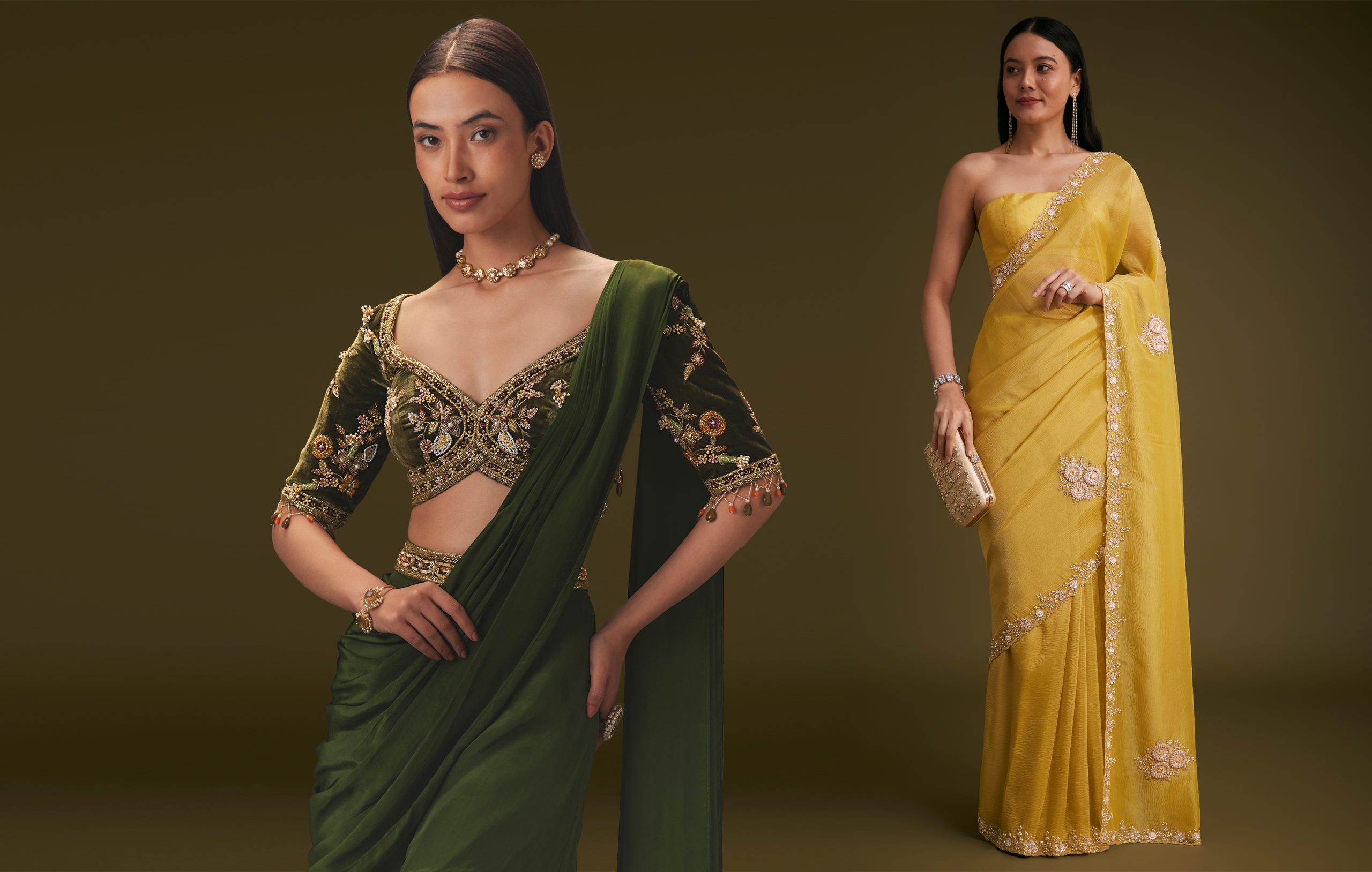 Forget the traditional red and gold! Modern bridesmaid sarees are all about making a statement. Here’s the lowdown: