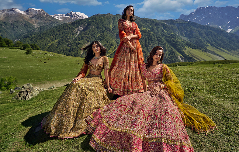 If you have a season-inspired wedding, say, summer, winter, or spring; then certain colors can work better than others. Vibrant hues for spring, light for summer, and dark hues like maroon, red, or olive green for winter can create a cohesive look for the brides. Your wedding theme can also center around your desired color schemes for bridal sarees, bridal lehenga, or gowns. There are myriad bridal couture options at KALKI in eye-catching palettes to set the tone for your wedding day. Make an informed and stylish decision about your bridal color palette as it can be the best anchor for your big day.