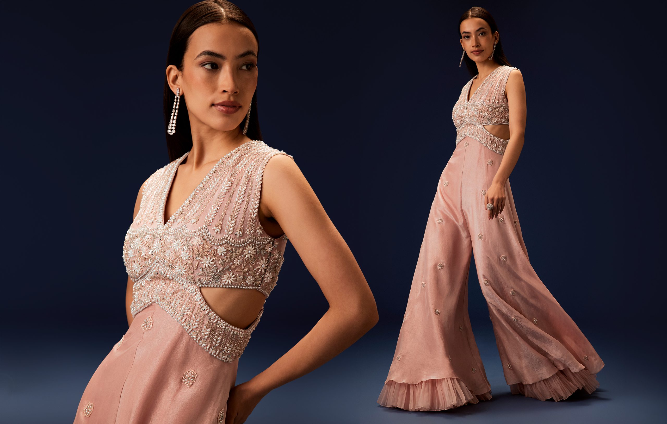 Your feel-good pick-me-up outfit is a click away. What vibe are you looking for? Is it a theme party or are you a bridesmaid? Taking all that into account, here’s traditional Indian clothing with modernity attached to the cape. Whether you want that bold colour for a party to stand out or a subtle shimmer with minimal embroidery but focusing more on the pattern.