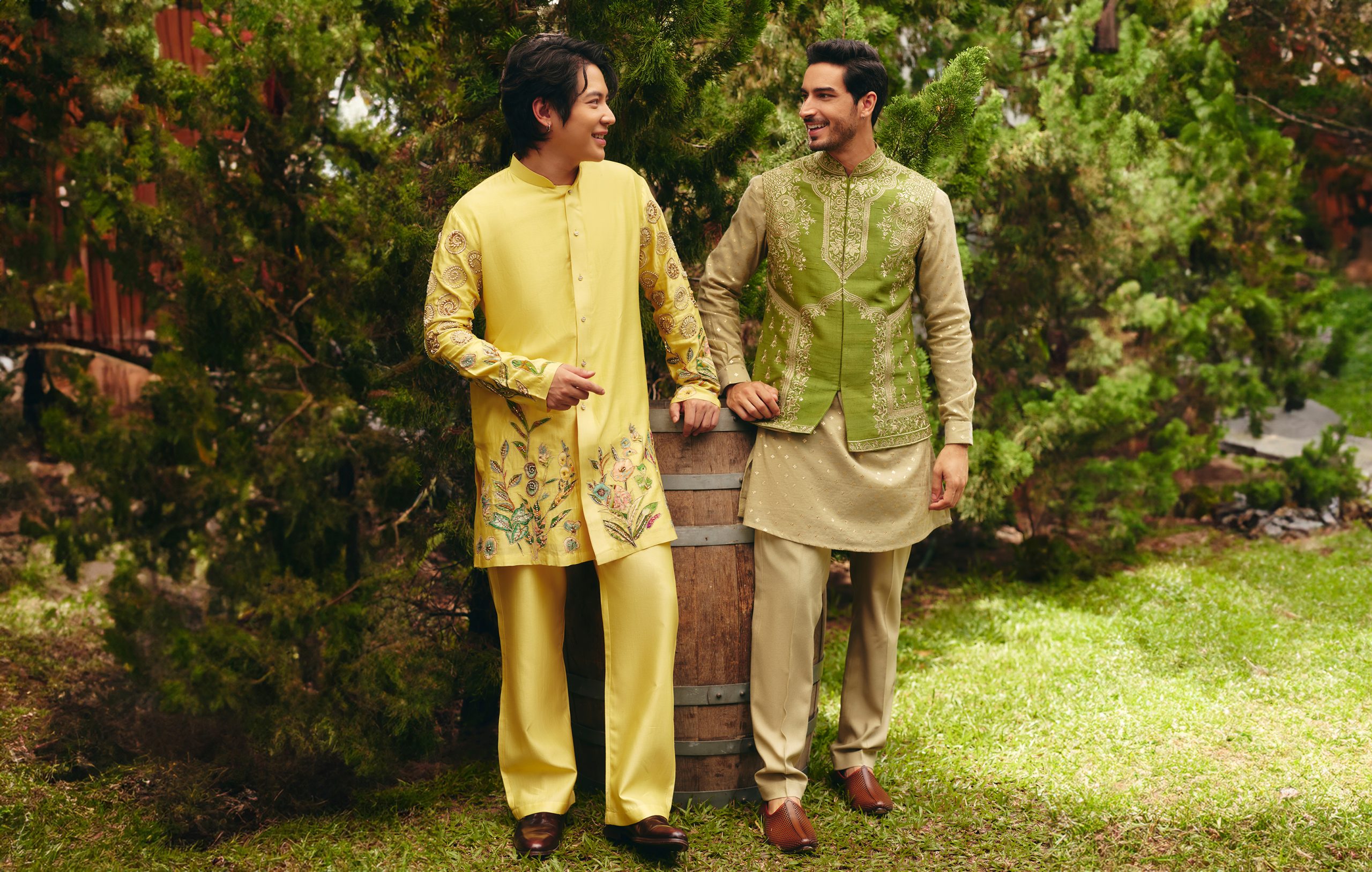 If you have a taste for minimalism, you will love men’s kurta set in lightweight fabrics like georgette, cotton, or linen with delicate resham or thread embroidery. Flaunt your classy taste by looking polished and sophisticated at intimate festive gatherings or casual events and leave everyone inspired.