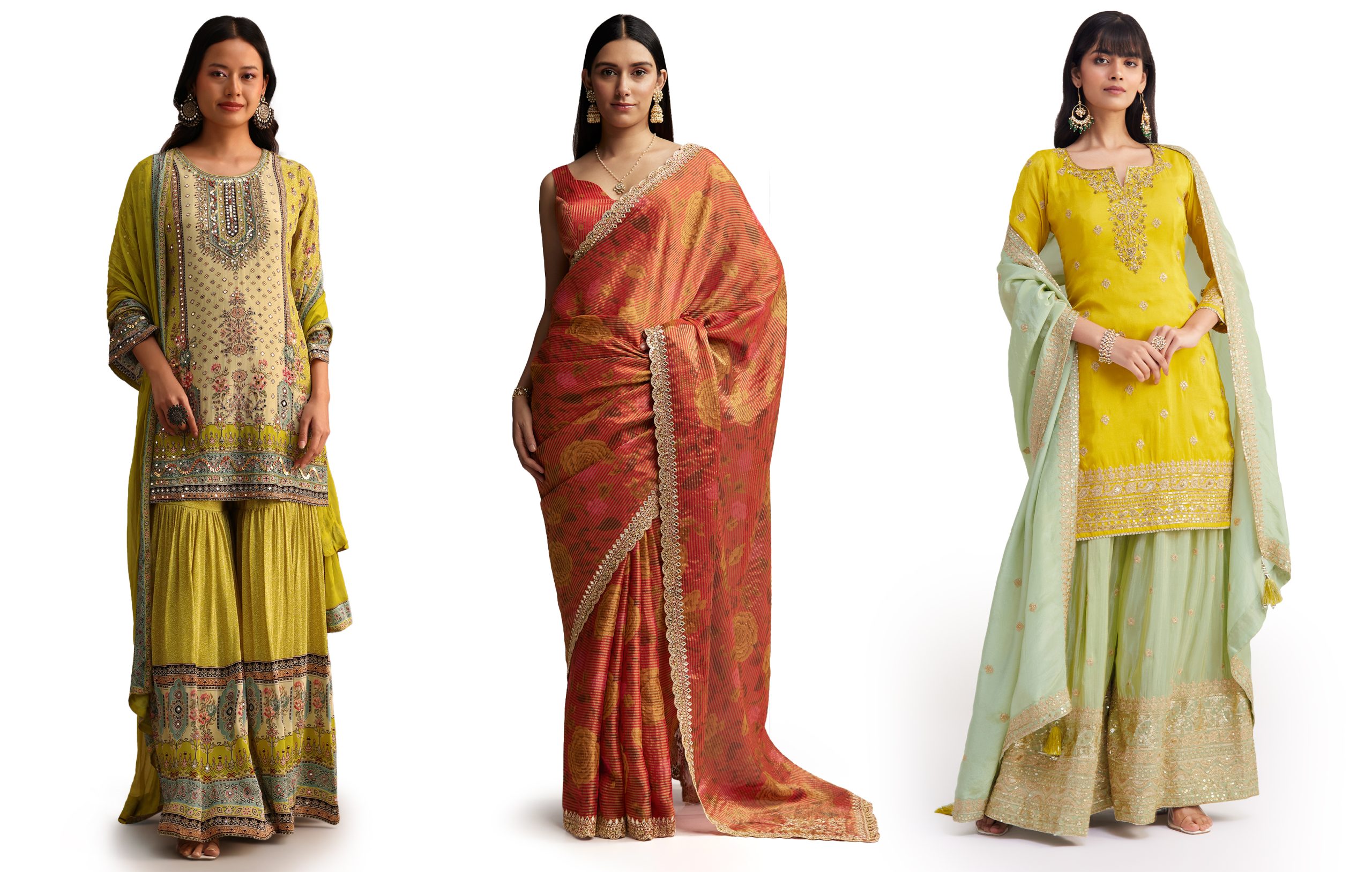 No, they aren’t mandatory, But saffron, yellow, red, and green are considered auspicious. You can consider softer tints such as butter yellow, rose, or sage. Build this palette with a complementary bright dupatta or blouse. The key to a comfortable fit is to choose a cohesive palette and the right kind of fabric that go well with the festivities. Use these cues to create the perfect Ganesh Chaturthi ethnic wear capsule.