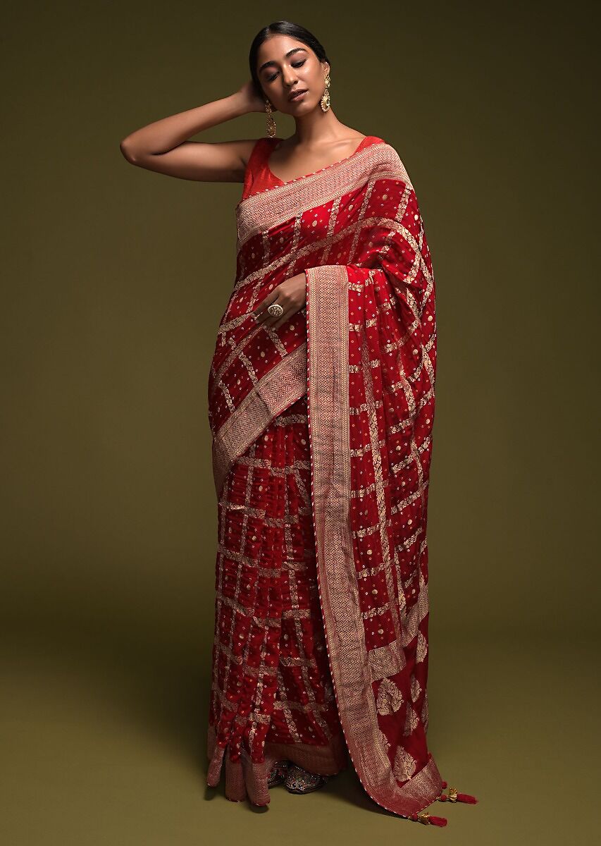 scarlet-red-banarasi-saree-in-georgette-with-woven-checks-and-bandhani-design-online-kalki-fashion-j0041407y-sg45355_4_ Vaibhavi Rathod 5 years ago share