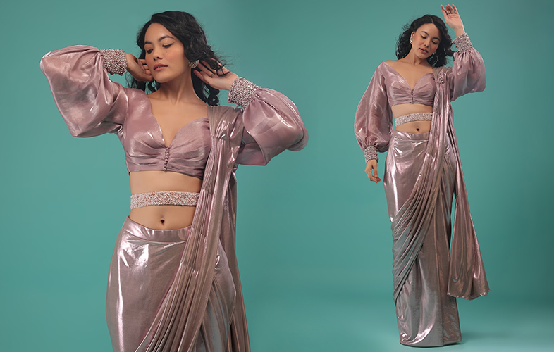 You will be surprised to know that the fabric of your designer saree or ethnic saree can add a fun, modern, chic, and traditional appeal. For cocktail parties and sangeet, one can opt for chiffon, crepe, or georgette ruffle drapes. For that Indian coy look, wedding silk sarees are the best bet. And if you are a party babe, the metallic drapes or pre-pleated sarees in lycra or satin can be your major fashion hack.
