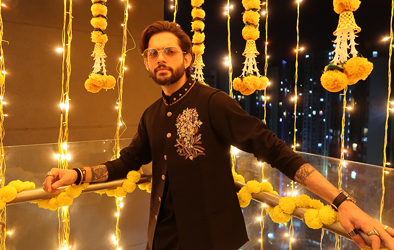 Just like women, the traditional dresses are a part and parcel of man’s life too. So, why not give the man in your life a stylish reboot with this blossom peach jacket in heavy silk. The ethnic zardozi-work Indo-western jacket with Aligarh pants will treat your guy for a fashion therapy. He can easily elevate his traditional or semi-formal look with this elegant number.