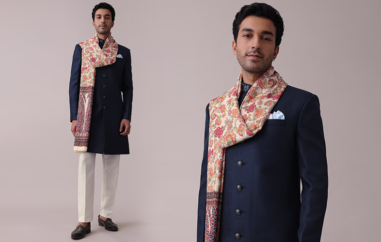 Marvel’s Black Panther fans can slay and celebrate the ‘black’ pride in a fashion statement curated by KALKI. If the superhero is your role model and you want to live up to those heroic moments; go for this black sherwani set with a printed stole. Let the world know what an action freak and classic lover you are!