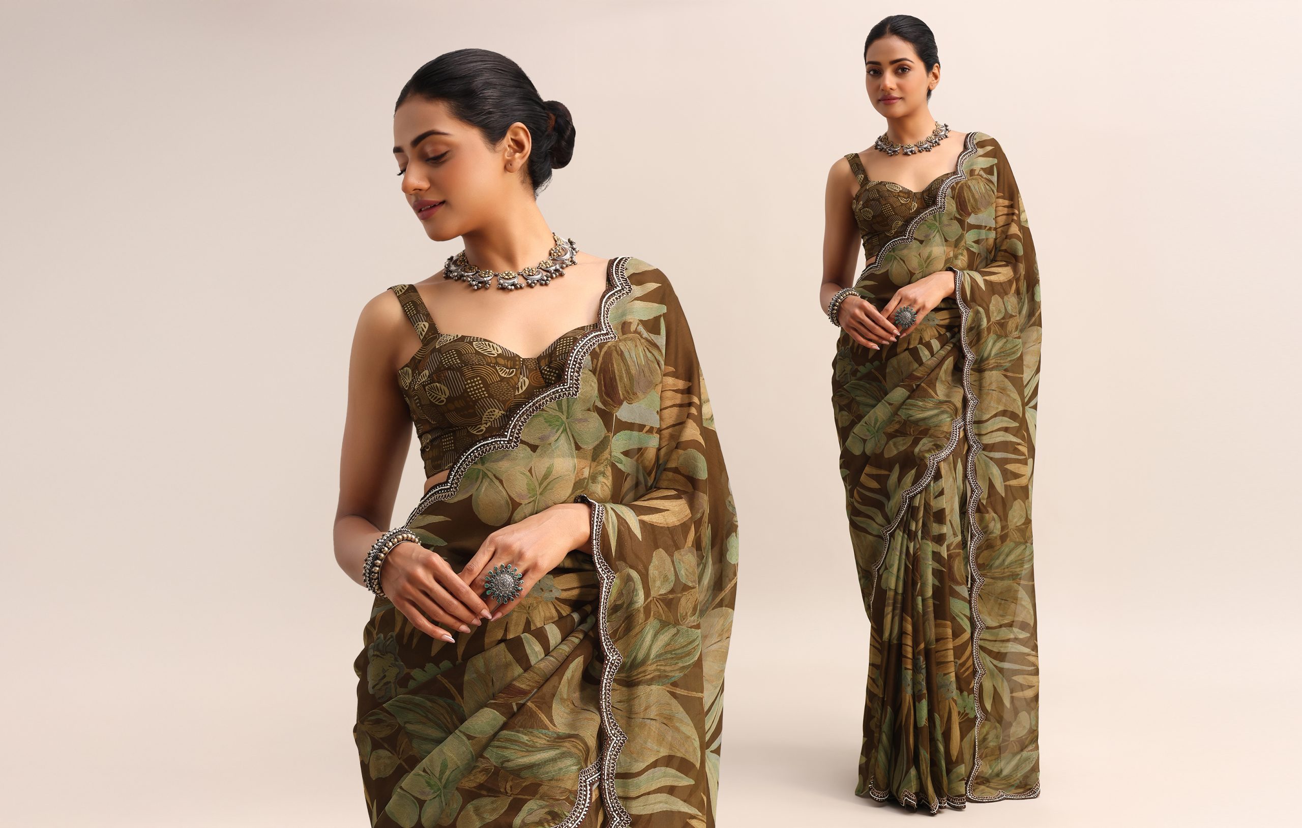 The festive girl season is officially upon us, and the surprise is that Mocha Mousse is stealing the spotlight. The Pantone’s Colour of the Year, unconventional but unmistakably chic, this earthy tone is a testament that you don’t have to shout colors to grab attention. Paired with sequins, zari, mirror work, or ombré embellishments, it becomes the ultimate dose of understated glamour and rich heritage, perfect for all events on your social agenda.