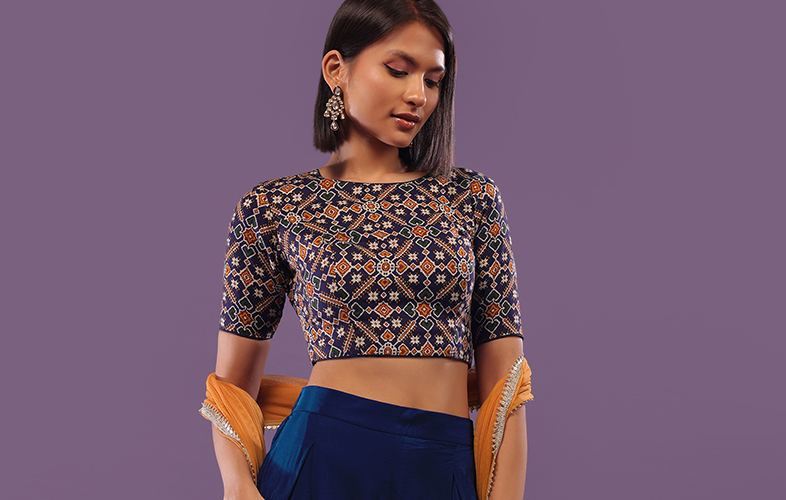 Versatile blouses with round, high, or boat necklines are perfect for traditional Diwali look. It is one of the most common, yet most modest blouse designs that’s preferred by women across India. Get yours online now.