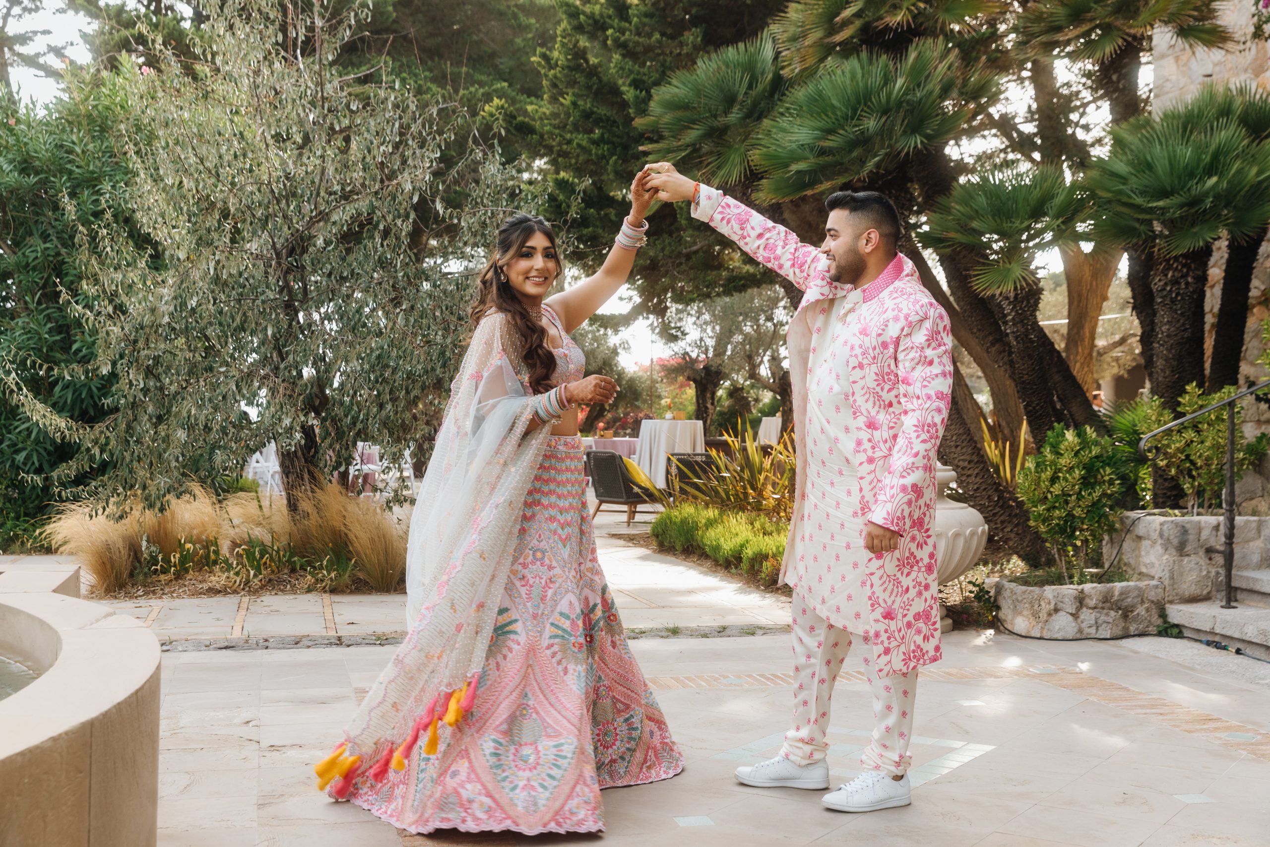 Meet Nikki Khanna and Jai Parmar: Indian-American meets British-Indian, long-distance survivors turned style soulmates. From DMs to dhol beats, their journey spanned time zones, continents, and three years of FaceTime before landing at their dream wedding in Sitges, Spain—just 20 minutes from where they had their very first date in Barcelona. Romantic much? We think sí.
