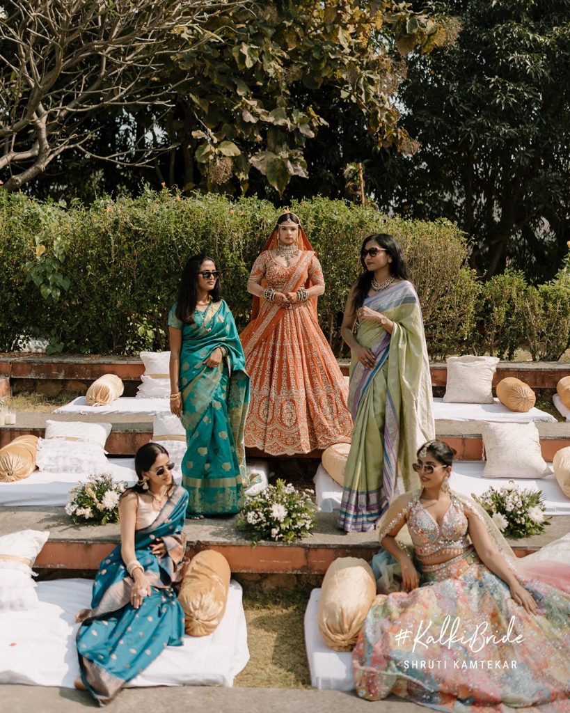 Surrounding Shruti was a bridal squad that felt like an extension of her personality, strong, stylish, and deeply supportive. Dressed in a harmonious palette of jewel tones, pastels, and soft metallics, the squad added layers of vibrancy to the ceremony.