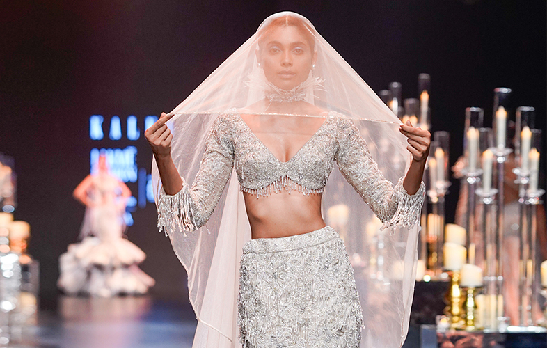 Well, you must be thinking, can I really find a non-traditional saree down the street for my wedding? The answer is an absolute ‘Yes’ because KALKI stocks alternative wedding day options that look contemporary, trendy, and modern as per millennial brides’ fashion choices. The sequin saree with layered frill blouse is a ‘shout out’ for your desire for designer aesthetics.