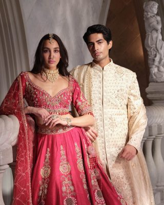 KALKI’s collection of lehengas is crafted uniquely with Indo-Western elements, layered designs, metallic accents, and neutral color palettes. The trending lehenga designs 2026 feature cape dupattas, double dupattas, jackets, high-low hemlines, and statement blouses. The lehengas are great choices for modern women, brides, and bridesmaids.