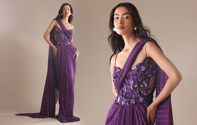 Nothing spells bliss than stepping into a skirt-like saree complete with a pre-stiched designer blouse! Feasible for party wear and formal events, it effortlessly melds the grace of a saree and gown. Akin to a maxi gown, the draped saree gown retains a pallu to maintain the essence of a six-yard drape.