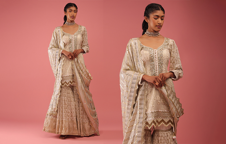A Bollywood heroine in a white salwar suit running amok in green fields or mustard fields is an enduring image that has remained stuck in our minds over the years. It just proves white salwar suits are a classic ensemble that can never fail you, be it for a casual occasion or a wedding event! In the salwar suit category, sharara suits are another hot favorite ensemble and we can completely understand why!