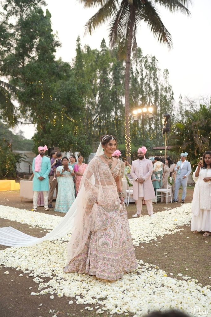 Her pastel pink lehenga may have been her third trial that day, but it became the foundation of everything that followed. It helped her imagine her décor, her theme, her colours, and her fairytale.
