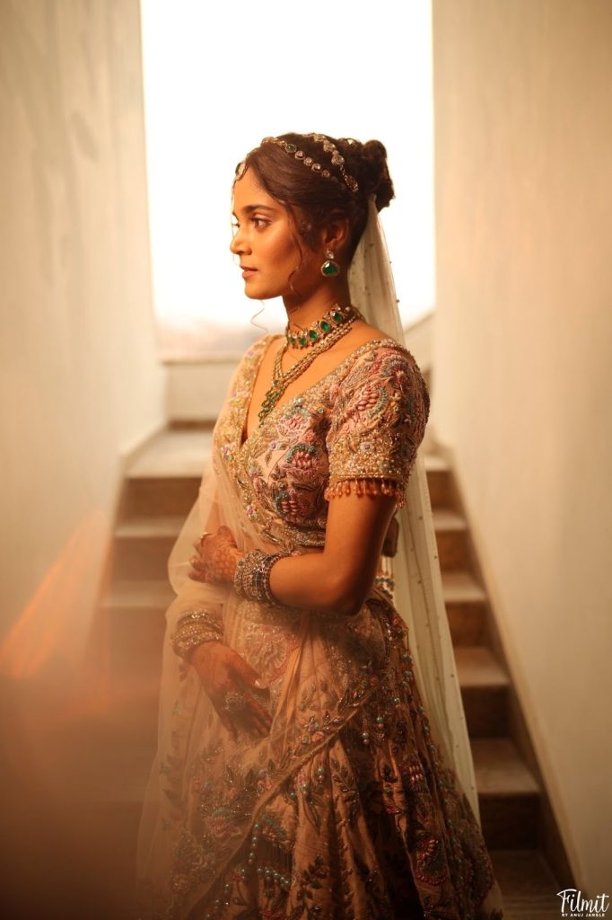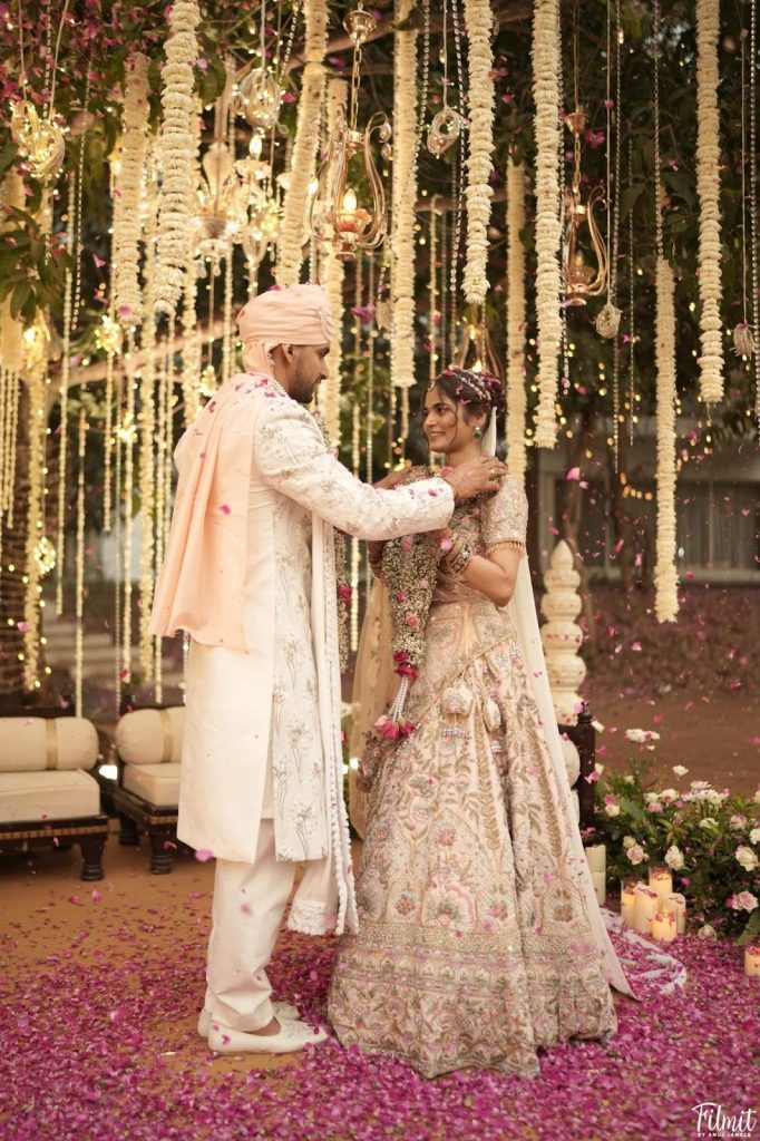 “The lehenga itself gave me the idea for my wedding theme, a fairytale wedding with pastel colours, lots of flowers, and hints of gold,” she shared. And that’s exactly what she created.