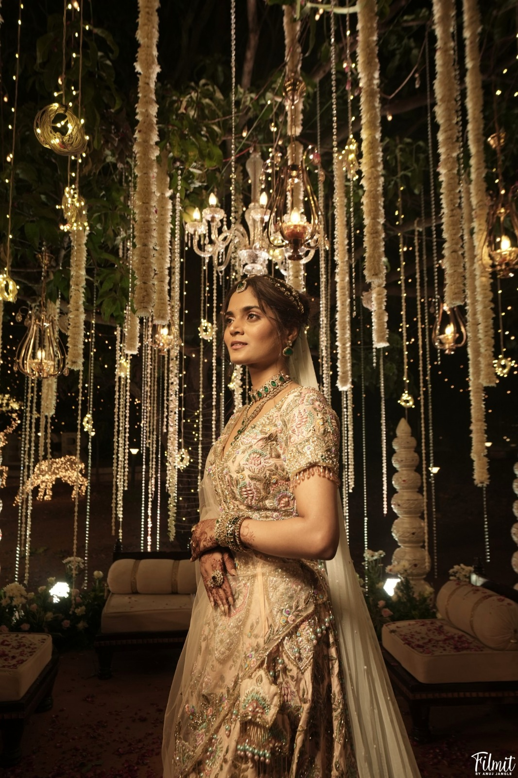 The décor reflected her soft, pastel-inspired mood, fresh florals, warm golds, scenic pathways, and fairytale details that tied back to her KALKI lehenga. Everything was captured beautifully, from emotions and honesty, turning every moment into a memory she could relive again and again.