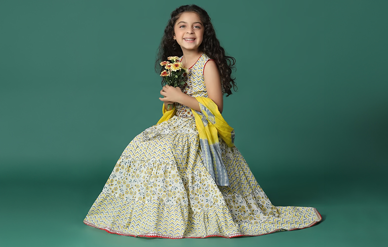 - Look for the child’s comfort level while selecting the sleeve length, the fabric of the blouse, the back design, and cuts. Remember, comfort can be the best style for any child to enhance their look in ethnic dresses.