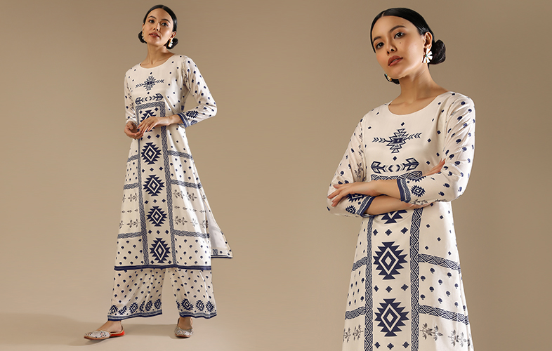 Palazzo and white cotton kurti sets have become one of the most common attires women like to wear. The style is loved for its comfortable appeal and elegant look. Palazzos are wide pants that flare more towards the bottom. These pants come in floral or solid colours that go very well with all kurti especially with white. These flare pants are very trendy and allow even plus size women the freedom to flaunt their fashion sense with confidence.