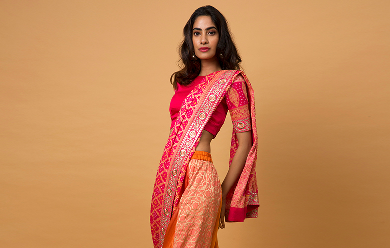 Pick a matching palazzo and crop top in pastel and pair it up with an embellished jacket to make the right noise! Palazzos are a trend that have caught up in the recent years and are here to stay. Alternately, you can go for a pleated flowing palazzo and add an embellished silk blouse to it. Play with patterns, cuts, and sleeves for a great look!