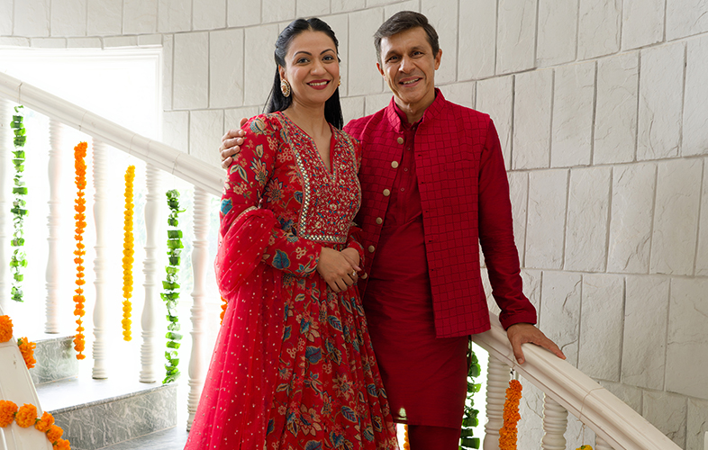 Whether you are nearing your first ever special Karwachauth as a new bride or dashing up traditionally like every year; if you are not keen on wearing your shaadi ka joda or the sherwani; KALKI has fished out some ethnic numbers and stylish designs to make a statement and celebrate it in a fashionable and joyous way. Men can go all out and stand beside their better half looking equally ravishing and dazzling. KALKI has some ethnic as well as quintessential choices for husbands and wives to get into the fashion mood! Here we go!