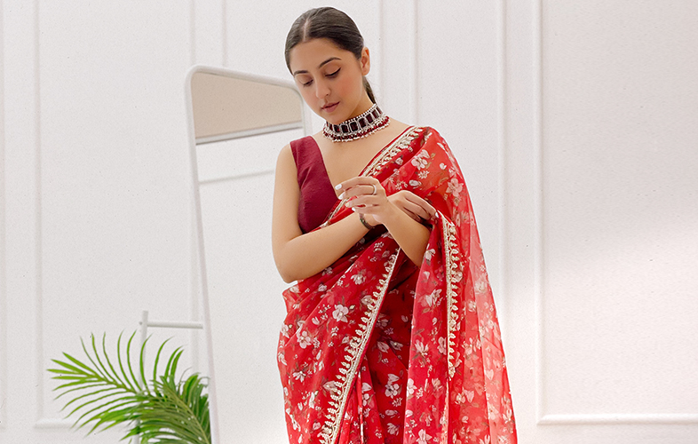 A luxurious organza saree with a fine texture is a go-to choice for women these days. The light and soothing organza offers a contemporary take on the age-old outfit of saree. A sheer organza saree can be experimented with different prints and hues. You can look for earrings or maang tikkas online to adorn your saree avatar.