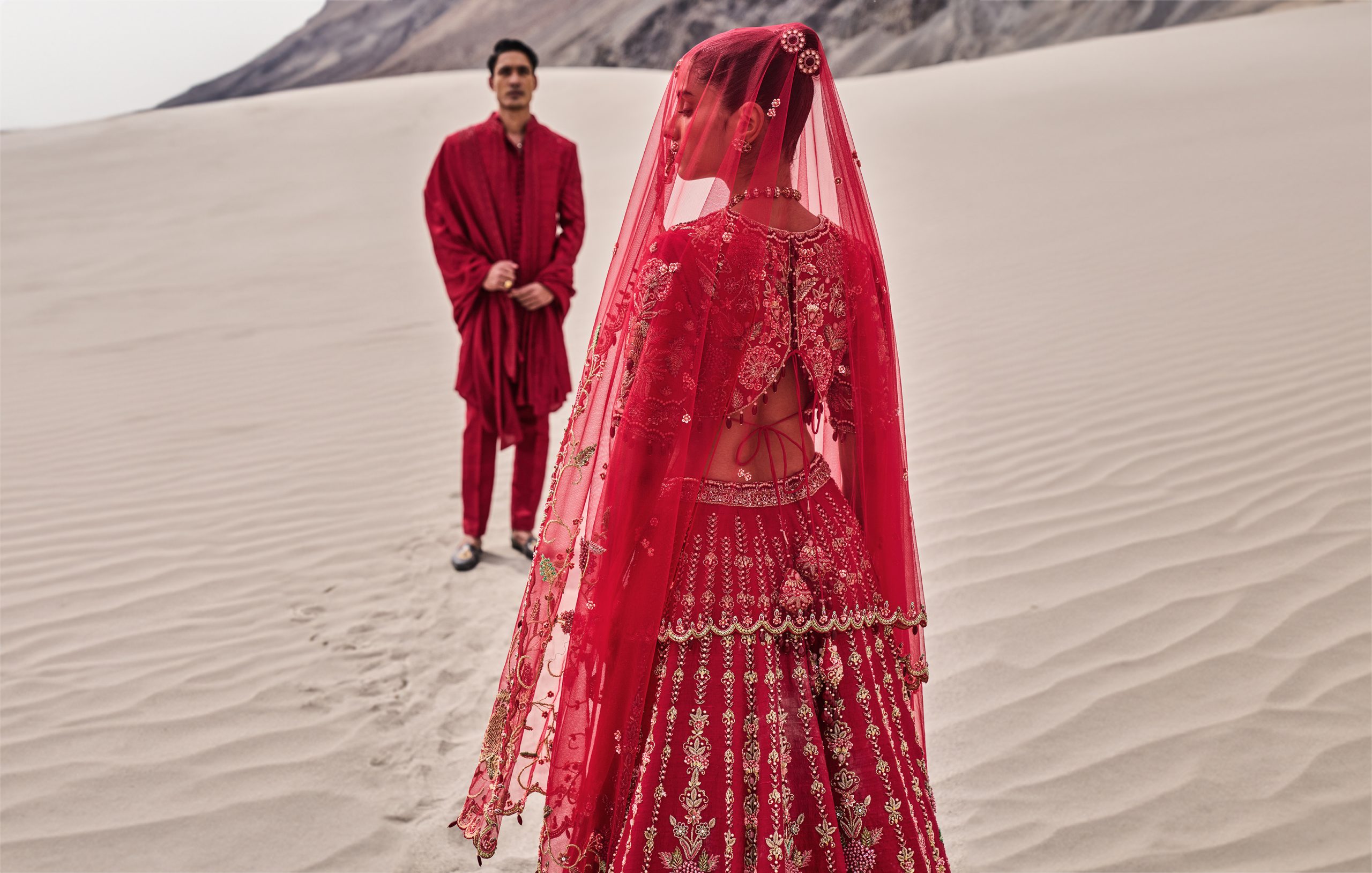 KALKI’s new assortment of red bridal dresses presents the ageless appeal of traditional hue along with some contemporary elements. The signature red gowns for wedding are a magnificent tribute to the classic colours that have been a part of Indian weddings for countless years and are still very popular. The blush reds are just great for modern brides who are looking for a combination of modern and traditional styles. KALKI’s realm of red with intricate embroidery, excellent craftsmanship, and a sprinkle of modernity is going to make the bride a true queen on her big day.