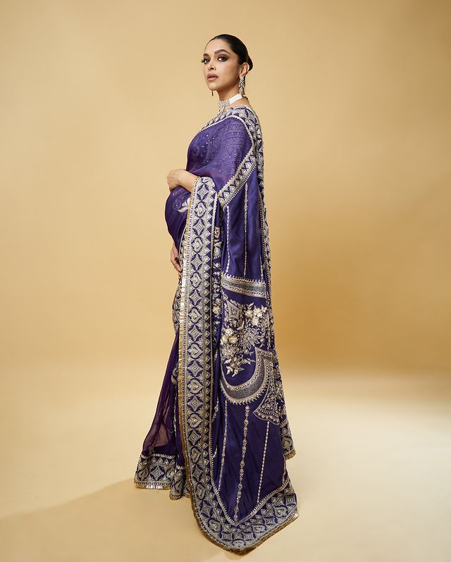 A contrasting pallu and tassels have been featured in this saree, making it the easiest way to pull Deepika's understated elegance at family gatherings.