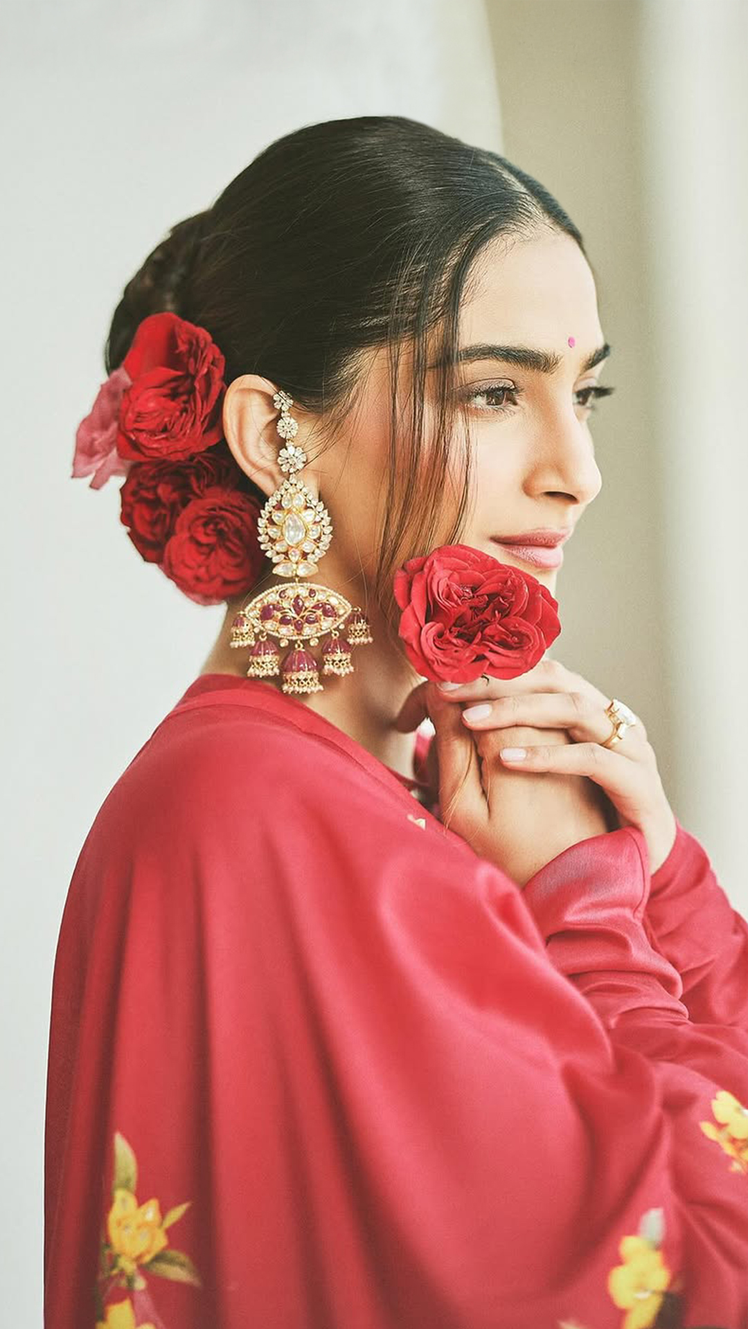 Statement jewellery forms an essential part of her festive looks, be it chunky necklaces, dazzling earrings, or intricate maang tikkas.