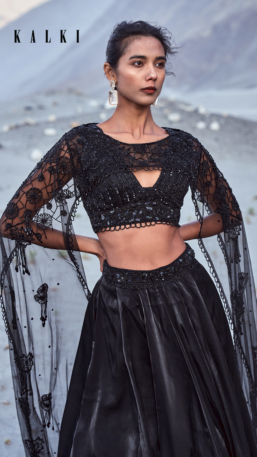 If you are in two minds whether to choose a statement or to go sleeveless, adding that dramatic flair to your lehenga choli for women.