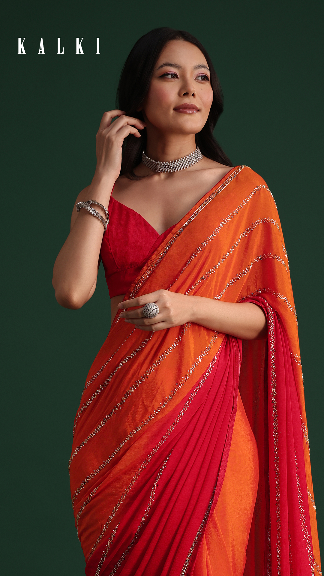 The bridesmaid saree is draped to bring in the curves, giving you a figure-hugging look.