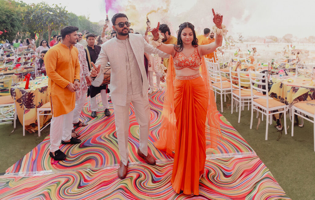 Some brides play it safe. Vanshika decided to wear orange.