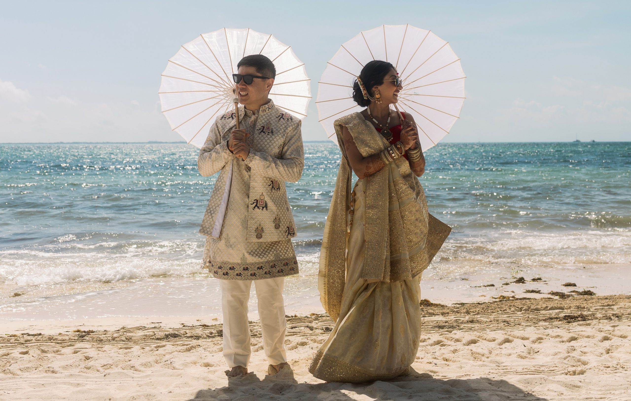 Today, the couple calls California home, but their wedding remains a shimmering memory of sunlit beaches, shared rituals, and two families coming together as one.