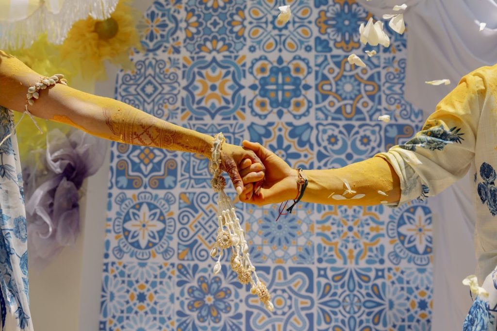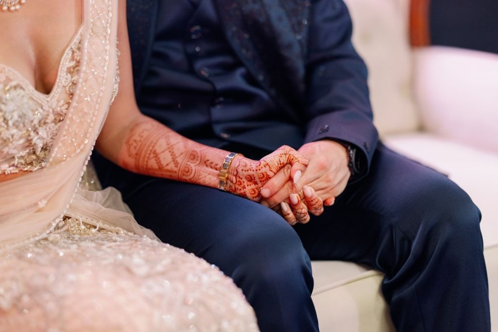 The mehendi ceremony was lively and intimate, with laughter echoing as intricate henna designs adorned Roshni’s hands. Dressed in a vibrant ensemble inspired by her Gujarati heritage, she celebrated alongside family and friends, while Eric and his family enthusiastically joined in the traditions.
