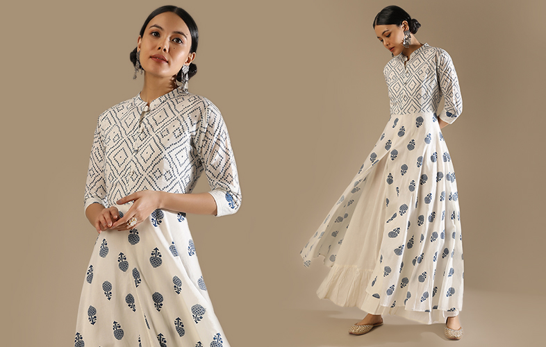 It goes without saying that white is the most classic and elegant piece of clothing. Serene, alluring and a summer staple, a dress in white inspires many. And interestingly, even though it is colorless, it dominates the fashion for its palate. Sangeet, Diwali, Holi or any other Indian celebration, a long white kurta can shine as bright as a star. Pristine, ivory, pearl and off-white hues have emerged as favorite fashion hues for many celebs and fashionistas around the world. Let’s have a look at the assortment of simple white long kurti designs from KALKI that are winning hearts!